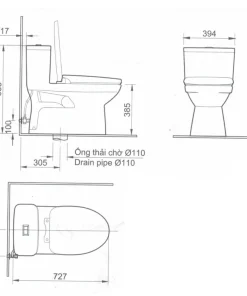 -Kiểu xả Xi-phông hút mạnh mẽ, rửa trôi mọi vết bẩn, tạo cho lòng bàn cầu luôn sạch sẽ