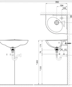 Bản vẽ kích thước chậu rửa mặt góc Inax L281V mini