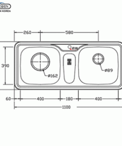 THÔNG SỐ KỸ THUẬT CHẬU RỬA BÁT INOX DAESHIN BD-1100 2 HỐ HÀN QUỐC