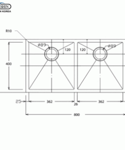 CHẬU RỬA BÁT 2 HỐ INOX DAESHIN SQS-8045