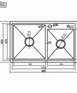 THÔNG SỐ KỸ THUẬT CHẬU RỬA BÁT INOX DAESHIN SQS-8245-T 2 HỐ HÀN QUỐC