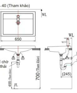 Bản vẽ bồn rửa mặt lavabo INAX L2397V