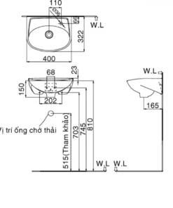 Bản vẽ bồn rửa mặt INAX L280V cỡ nhỏ