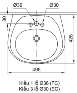 Bản vẽ kích thước lavabo treo tường Inax L284V