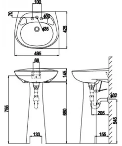 Bản vẽ bồn rửa mặt INAX L284V chân L284VD