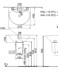 Bản vẽ bồn rửa mặt INAX L288V kèm chân L288VC