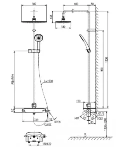 Bản vẽ kỹ thuật sen cây nóng lạnh Inax BFV 615S8C