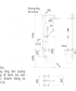 - Áp lực nước: 0.15 MPa ~ 0.75 MPa