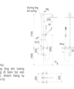 - Áp lực nước: 0.15 MPa ~ 0.75 MPa