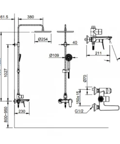 Bản vẽ kỹ thuật sen cây tắm INAX BFV515S nóng lạnh
