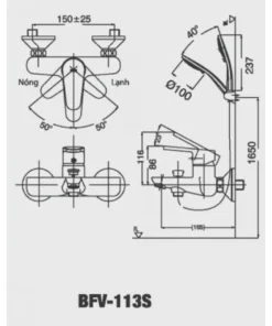Bản vẽ kỹ thuật Vòi sen tắm nóng lạnh INAX BFV-113S