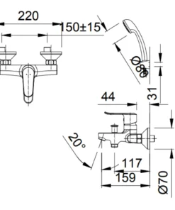 Bản vẽ kỹ thuật vòi sen tắm INAX BFV2013S