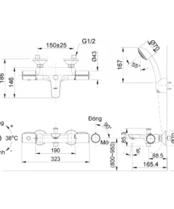 - Áp lực nước: 0.1MPa ~ 0.75MPa