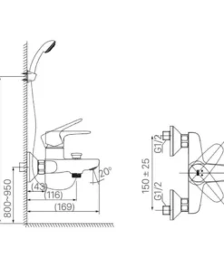 Bản vẽ kíchh thước vòi sen tắm INAX BFV1113S8C