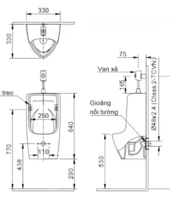 Bản vẽ bệ tiểu nam treo tường U431V INAX