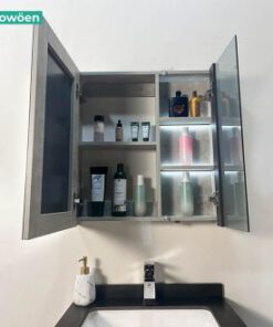 Các vật dụng nhà tắm được chứa trong tủ gương Mowoen, giúp cho không gian phòng tắm gọn gàng, ngăn nắp, tiện nghi và giữ vệ sinh.