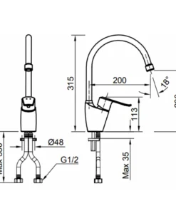 Bản vẽ kỹ thuật vòi bếp INAX SFV-2011S