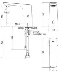 Bản vẽ kích thước vòi nước tự động INAX AMV 91K
