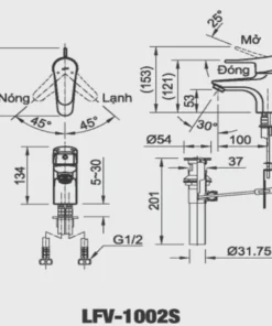 Bản vẽ kỹ thuật vòi lavabo inax LFV1002S nóng lạnh