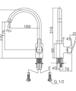Bản vẽ kích thước vòi rửa bát INAX SFV802S