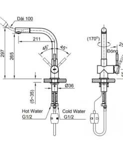 - Vòi rửa bát INAX SFV-1013SX nóng lạnh gắn chậu đến từ thương hiệu thiết bị vệ sinh INAX